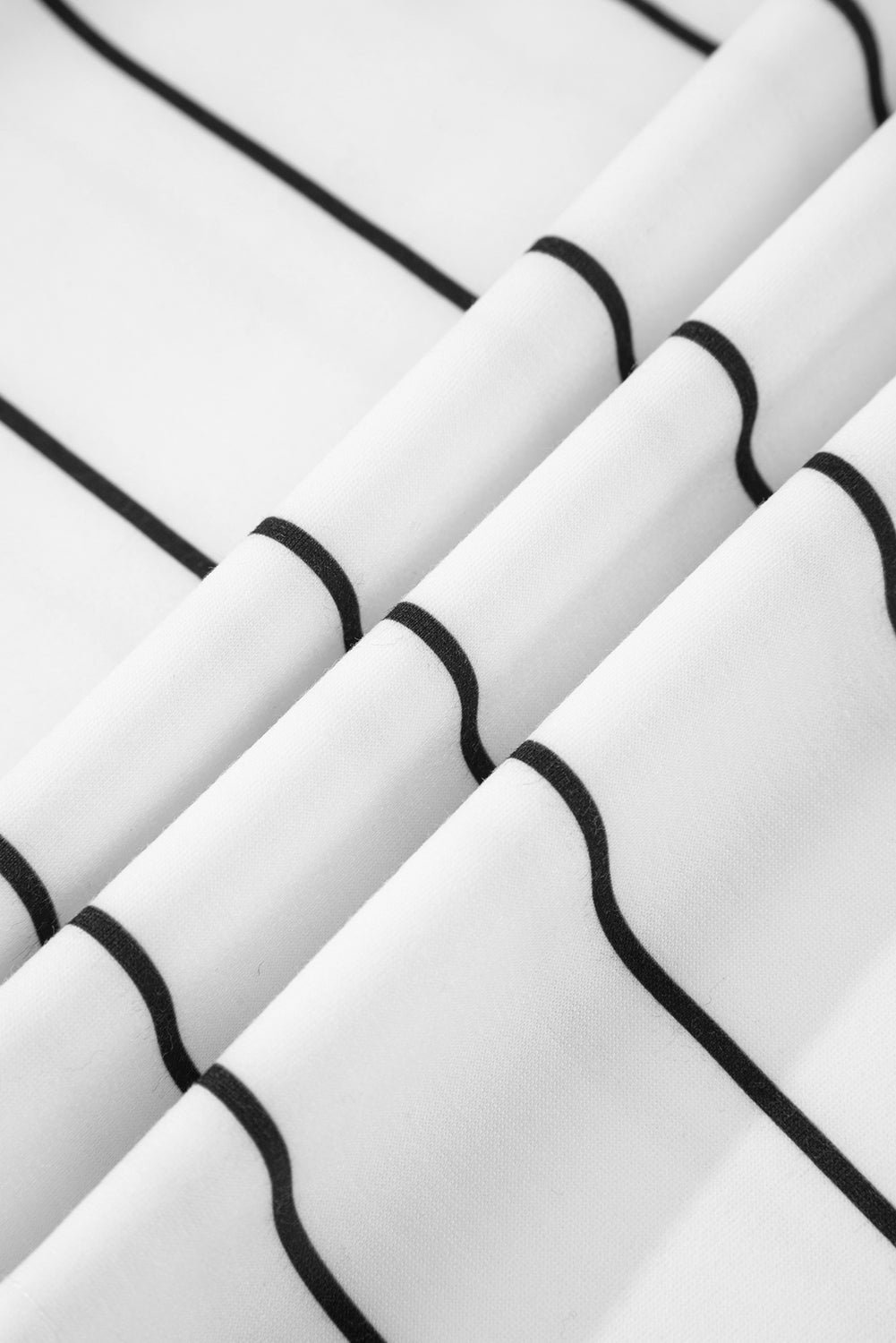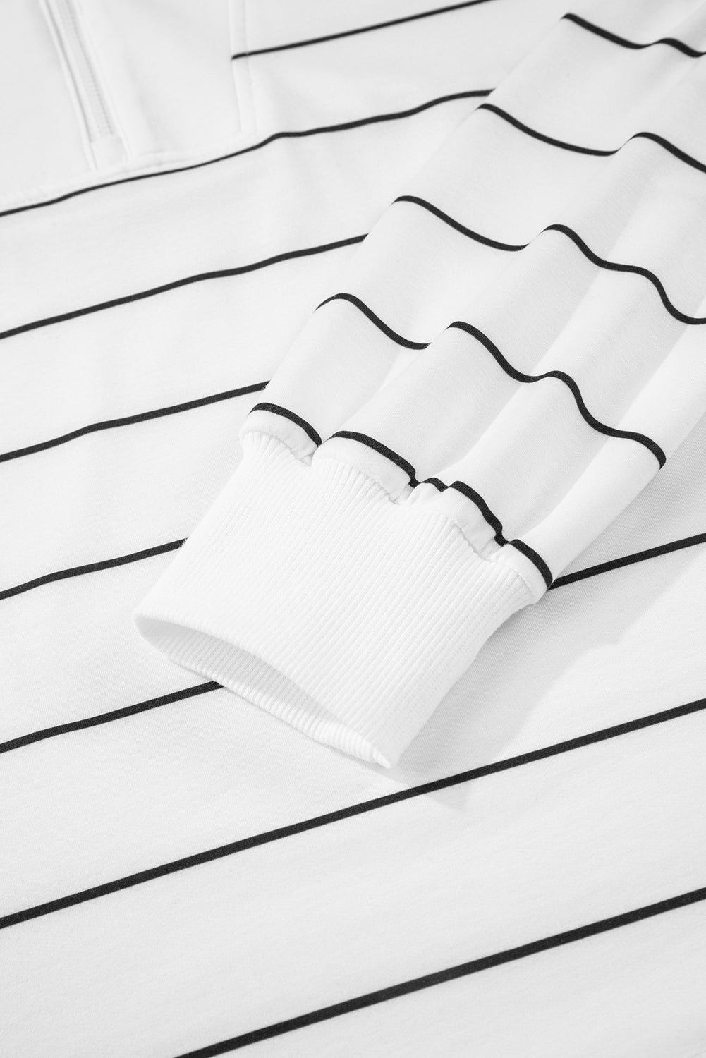 White Stripe Zip up Drop Shoulder Pullover and Short 2pcs Outfit